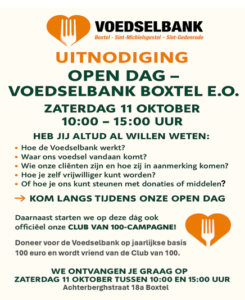 A.s. zaterdag 11 oktober tussen 10:00 en 15:00u Open dag Voedselbank Boxtel e.o.